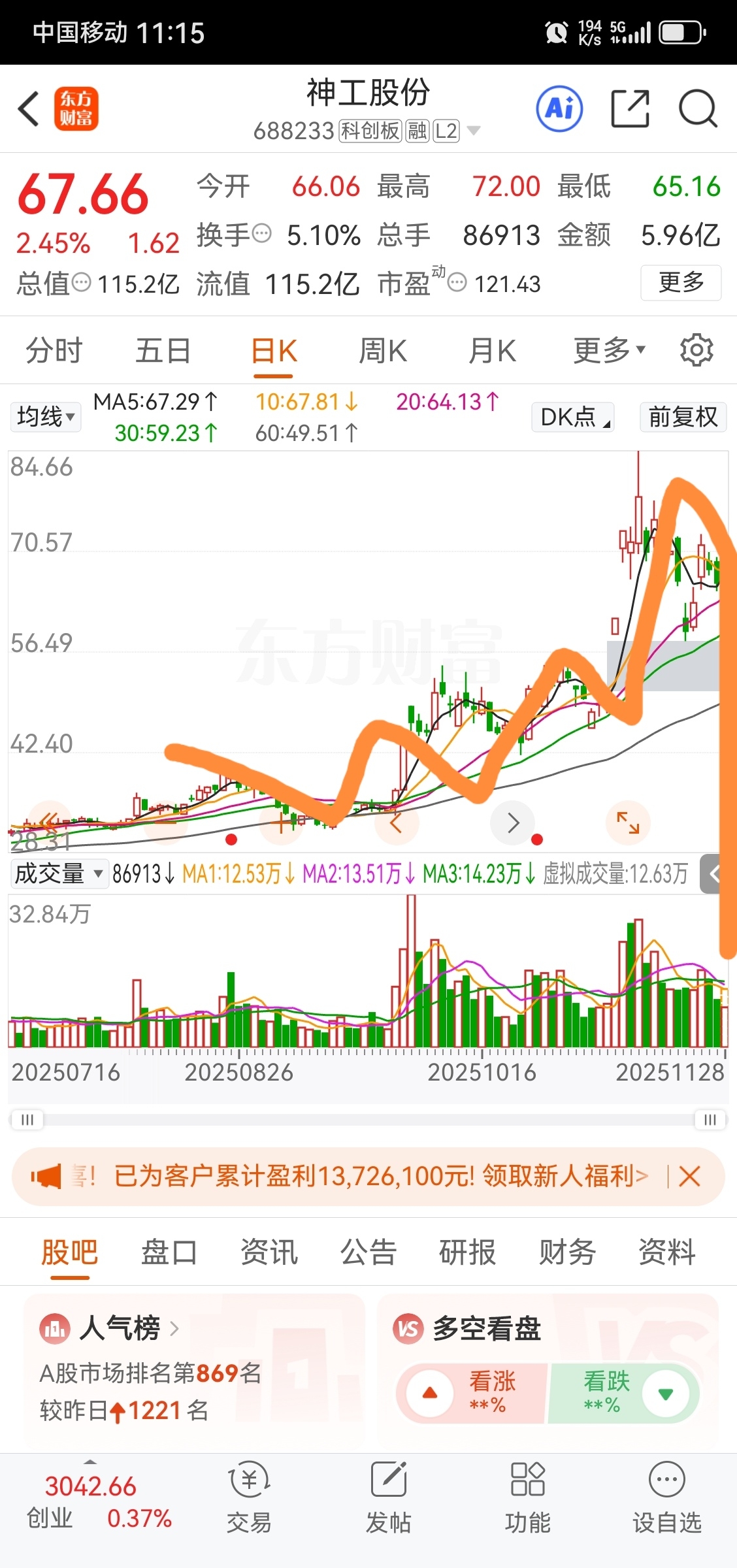 $神工股份(SH688233)$ K线陷井!小心!
