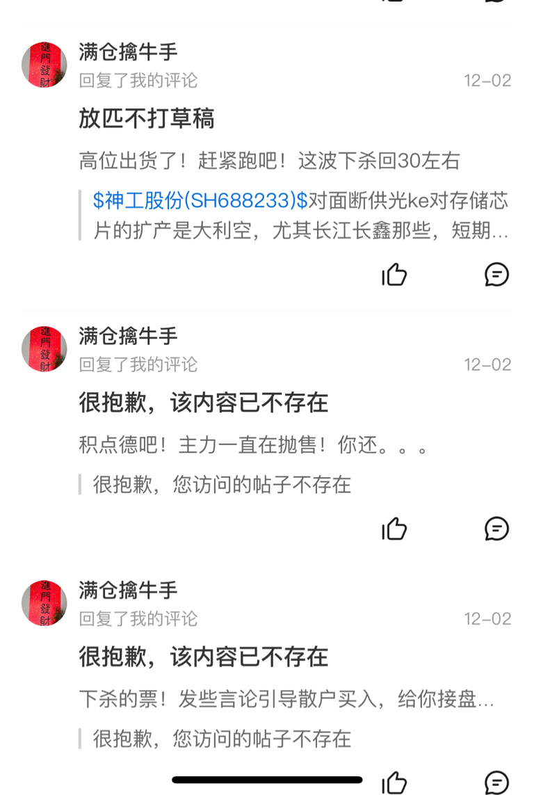 $神工股份(SH688233)$ 这人让高位买入!一直唱多!现在删帖了