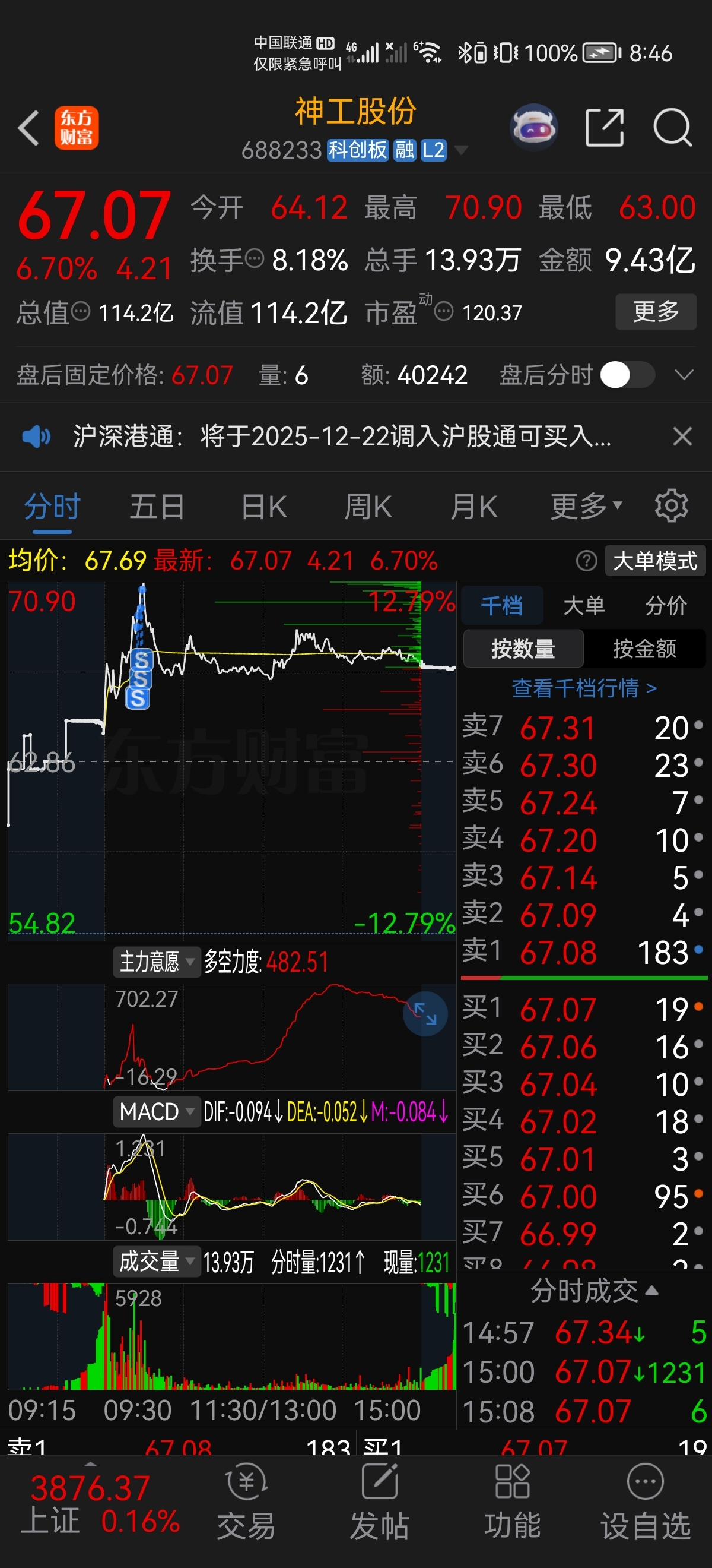 $神工股份(SH688233)$ 买入当天晚上公布股东减持,防不胜防啊,第二天吃碗大面,股是好股 ,架不住股东这样玩啊,排队接力减持。君子不立危墙之下,只有看冰点后修复,第三天,没有新低,潜伏观望,没有出手。没想到今天给了一线生机,小赚了万把茶水费,先跑为敬。今天盘中创近几日新高,感觉应该还有上行空间,留了点底仓,成本已经大幅摊薄,涨跌随意,去留无意。