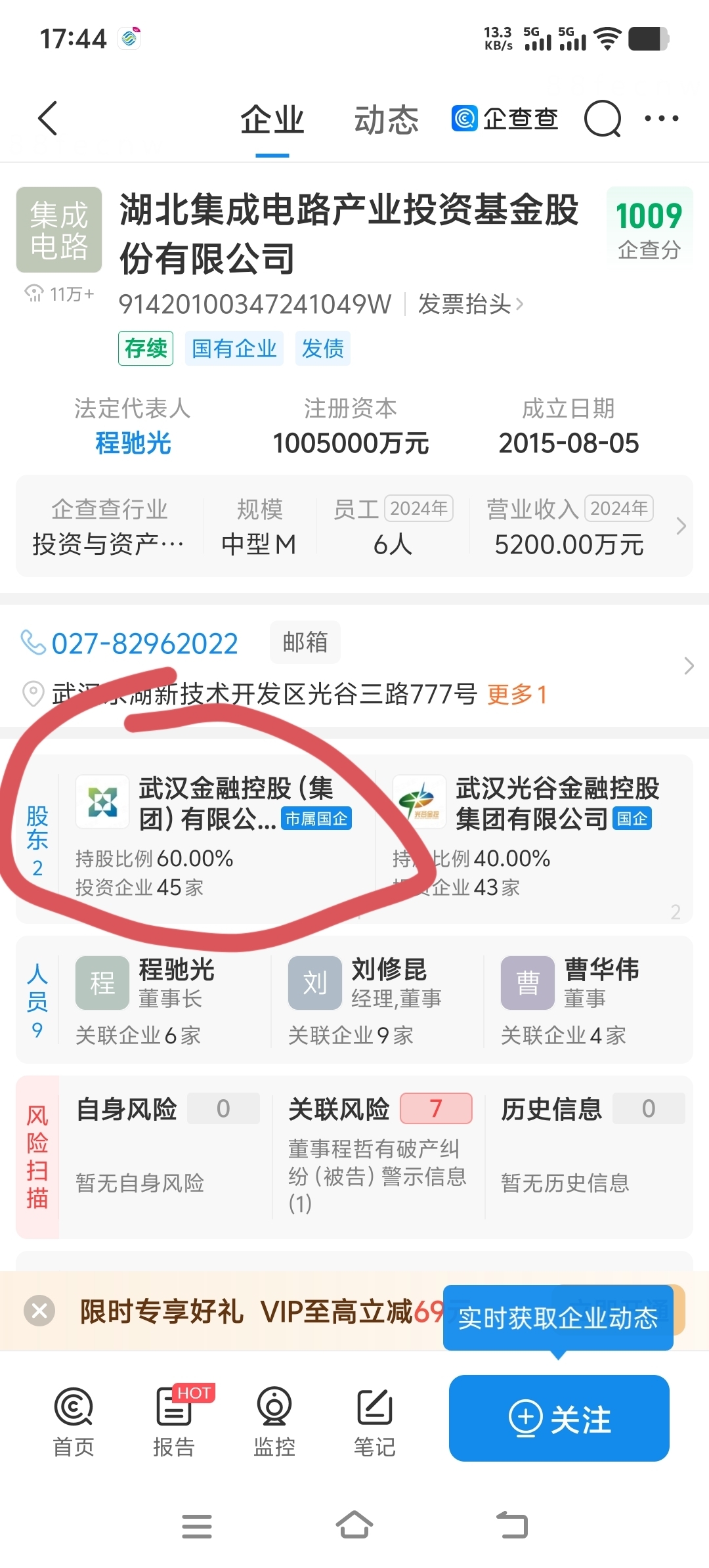 神工投的那个2亿的湖北项目,武汉金控是这两家公司大股东的间接控股股东,里面的控股