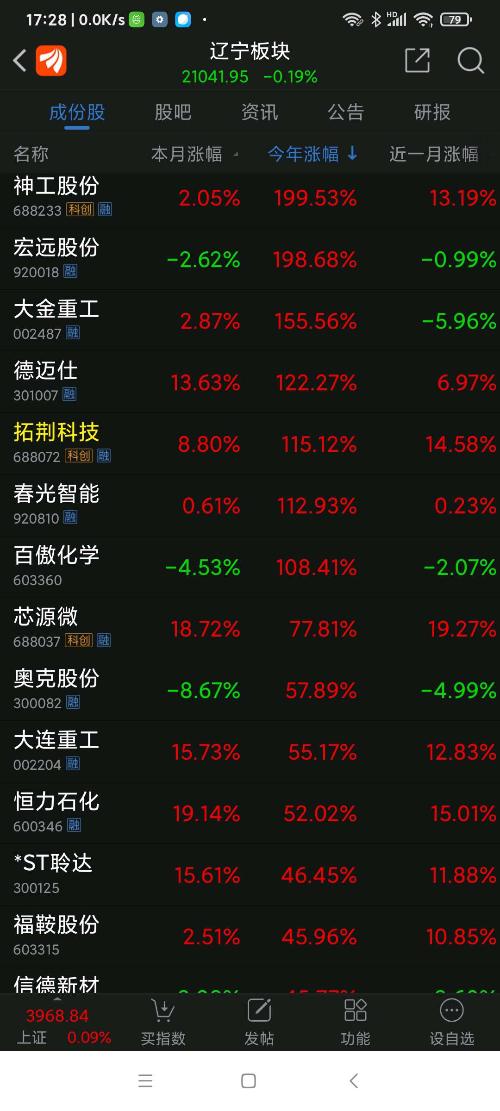 神工股份、大金重工、德迈仕,25年辽宁板块(共有81个股票)(沪深股市)涨幅前三名。