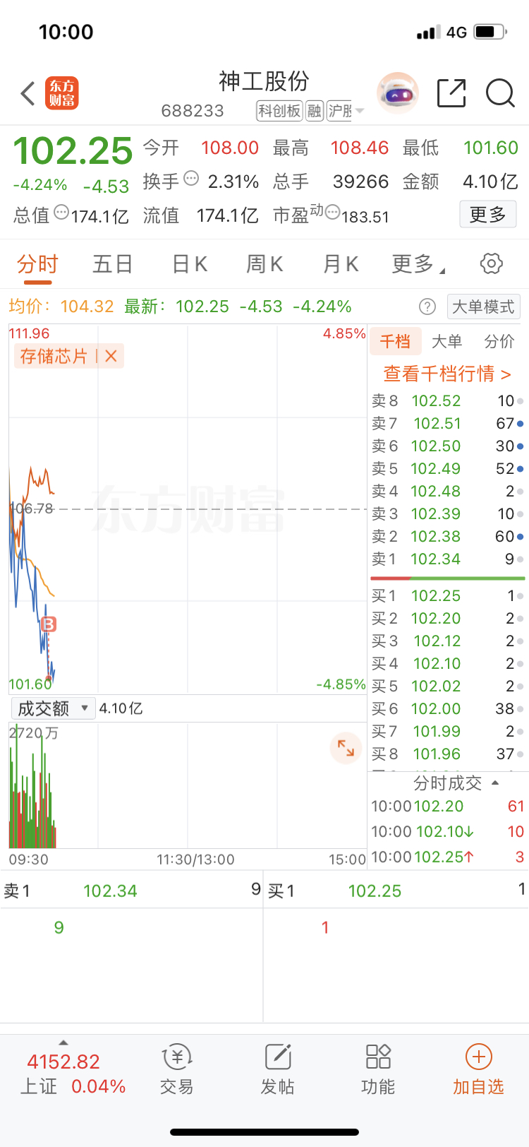 $神工股份(SH688233)$ 102进场,做个T,主力别套我