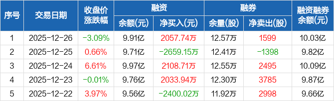 天岳先进:融资净买入2057.74万元,融资余额9.91亿元(12-26)