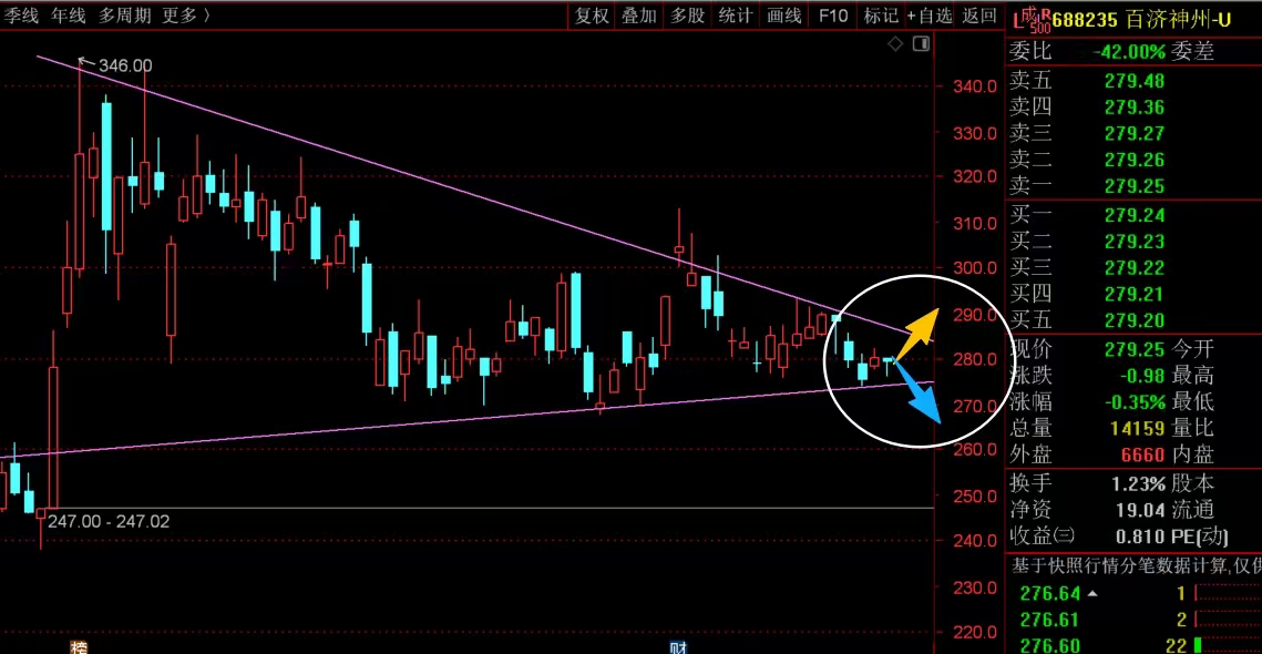 $百济神州-U(SH688235)$ 这段时间主要是在走一个三角收敛的形态,接下来重点就看收敛形态完成后的方向选择,能带量突破就好看了,打开上涨空间,但如果突破未遂,就要注意回落风险了,脚底趋势线破位就要注意控制仓位应对了。#炒股日记# #周末杂谈#