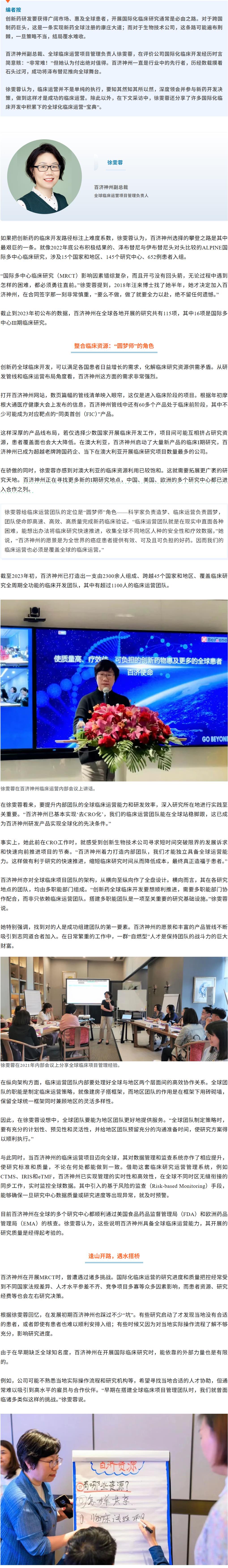 $百济神州-U(SH688235)$ 生物医药PMO访谈记百济神州副总裁、全球临床运营项目管理负责人徐雯蓉