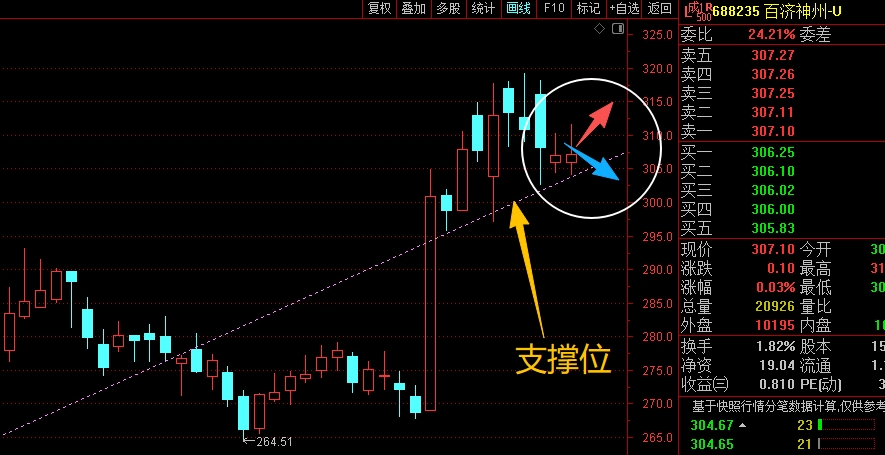 $百济神州-U(SH688235)$ 前两周大幅拉升之后,最近两周都在高位做一个震荡盘整,短线来看,这里重点是观察脚底趋势线的支撑情况,能稳住就还不错,继续震荡看涨,但如果有效跌破,就要注意短线的回落调整了,需要控制好仓位应对。#炒股日记# #周末杂谈#