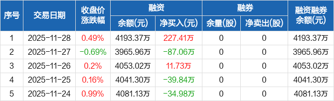 春立医疗:融资净买入227.41万元,融资余额4193.37万元(11-28)