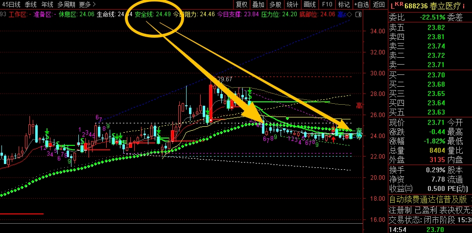 $春立医疗(SH688236)$ 中期趋势比较稳健,一直震荡上行,但近期高位震荡回落,略微跌破了安全线后,就在安全线24.49位置附近震荡折腾,接下来就看安全线的得失,能拉起来稳住就没问题,继续持仓等待,但迟迟站不上去,并且略微有向下趋势的话,就要严格控制仓位应对了,放着破位连续下杀的风险。#炒股日记# #周末杂谈#