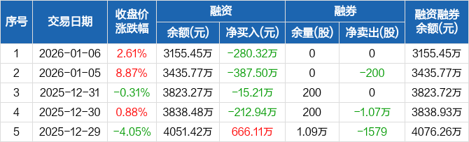 春立医疗:连续4日融资净偿还累计895.97万元(01-06)