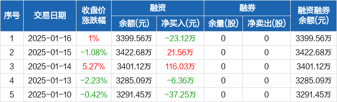 超卓航科:融资净偿还23.12万元,融资余额3399.56万元(01-16)