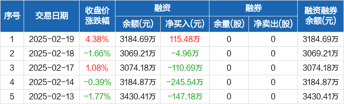 超卓航科:融资净买入115.48万元,融资余额3184.69万元(02-19)