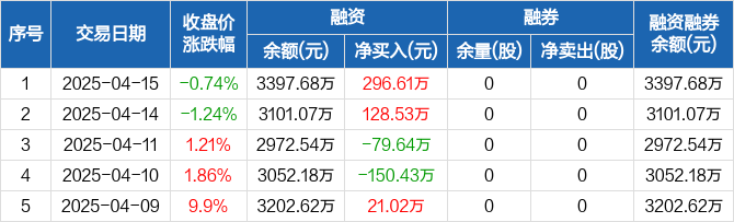 超卓航科:融资净买入296.61万元,融资余额3397.68万元(04-15)