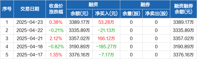 超卓航科:融资净买入53.28万元,融资余额3389.17万元(04-23)