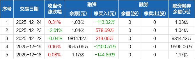 超卓航科:融资净偿还113.02万元,融资余额1.03亿元(12-24)