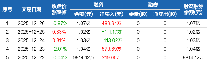 超卓航科:融资净买入489.94万元,融资余额1.07亿元(12-26)