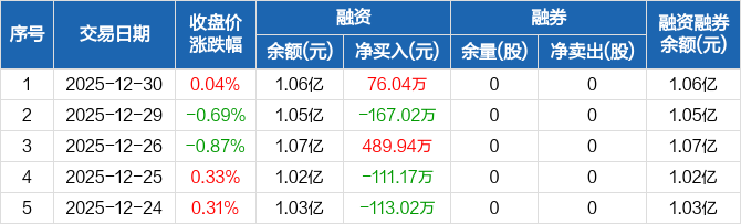 超卓航科:融资净买入76.04万元,融资余额1.06亿元(12-30)