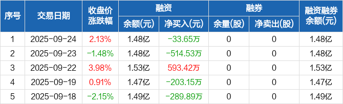 和元生物:融资净偿还33.65万元,融资余额1.48亿元(09-24)