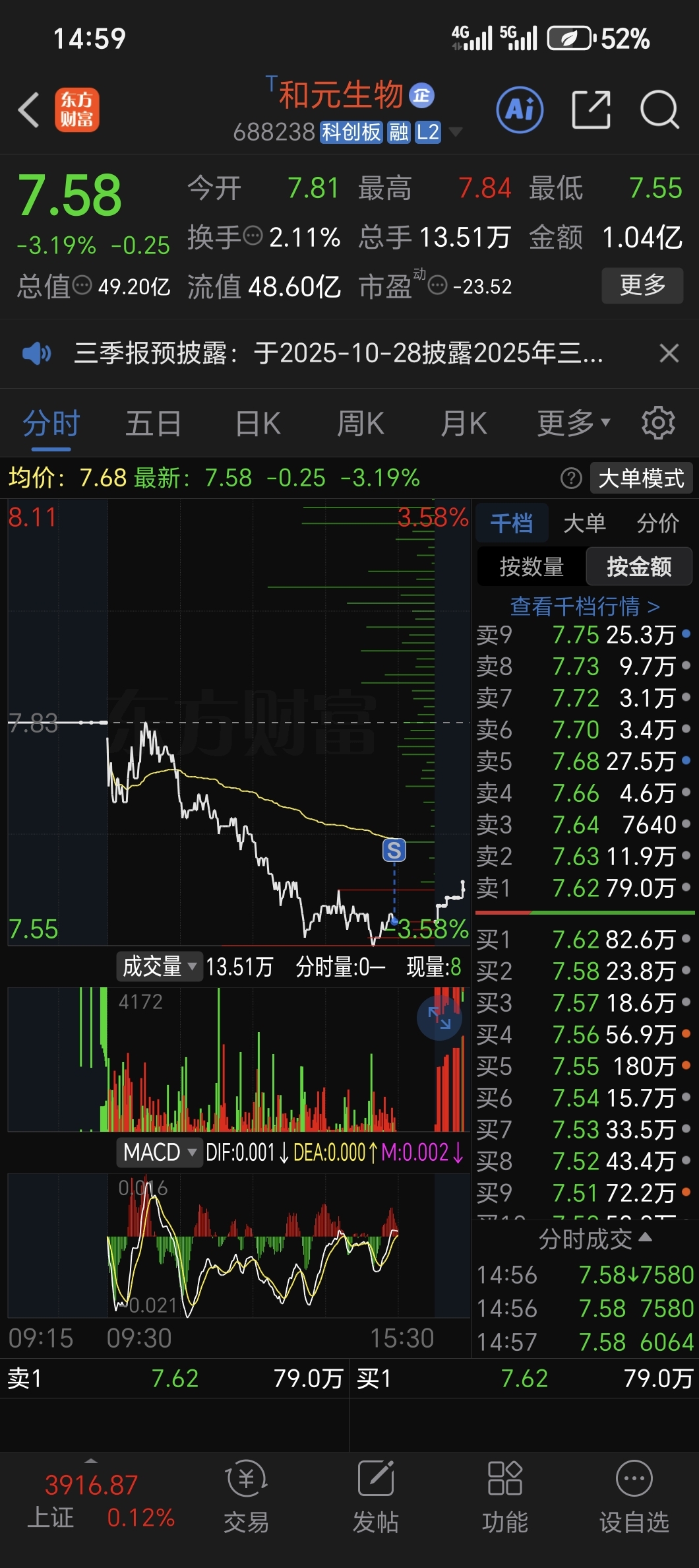 $和元生物(SH688238)$ 蒜鸟蒜鸟,走鸟。耗不起。