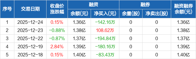 和元生物:融资净偿还142.16万元,融资余额1.36亿元(12-24)