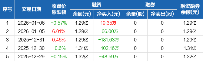 和元生物:融资净买入19.35万元,融资余额1.29亿元(01-06)