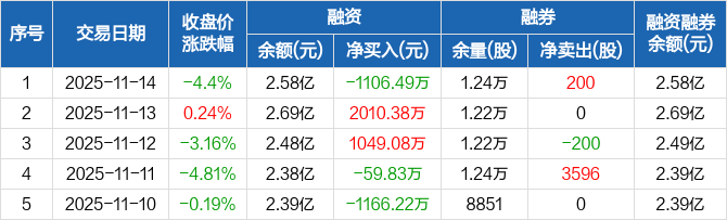 航宇科技:融资净偿还1106.49万元,融资余额2.58亿元(11-14)