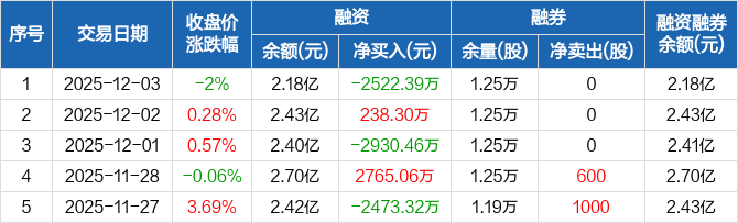 航宇科技:融资净偿还2522.39万元,融资余额2.18亿元(12-03)