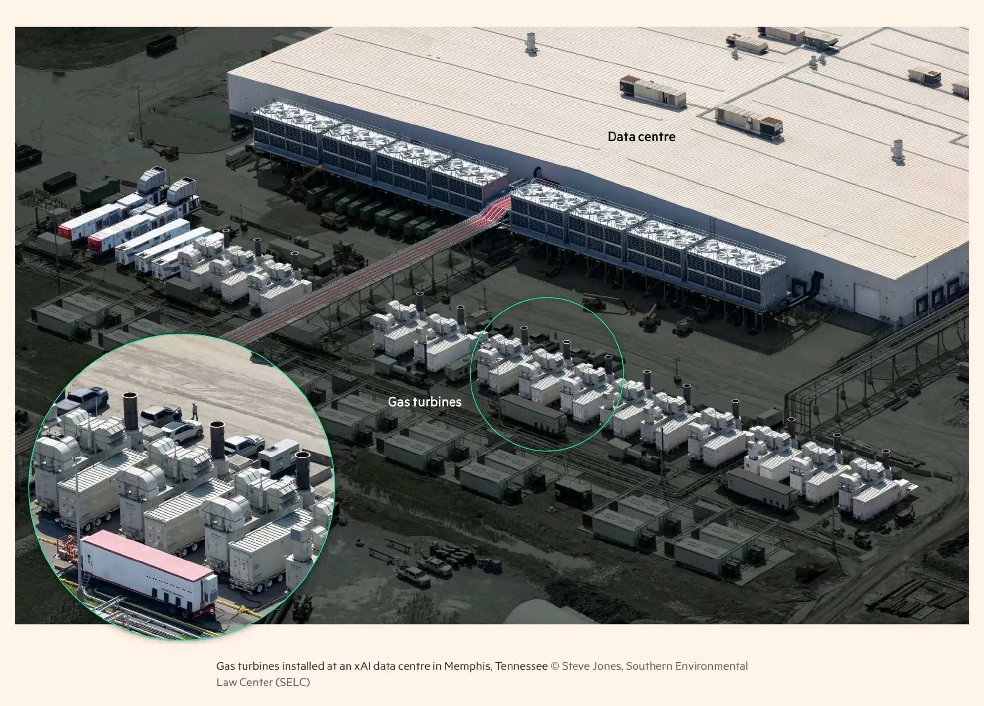 $航宇科技(SH688239)$ 感觉好像都没人正儿八经的普及过天然气涡轮发电机的用处,下面的图是xai的数据中心,只是举个例子,基本上美国新建的数据中心标配都是这样的,那串白的就是天然气涡轮发电机,这样就可以绕过满载的公共电网了,想怎么用就怎么用。