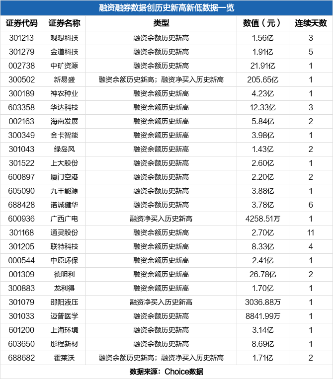 从融资余额增速来看,当日航宇科技、太阳电缆、中钢洛耐等融资余额环比增幅居前,其中航宇科技环比增长达63.50%。融资余额环比增幅前十标的明细如下: