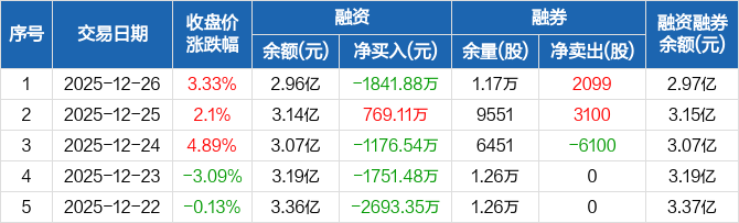 航宇科技:融资净偿还1841.88万元,融资余额2.96亿元(12-26)