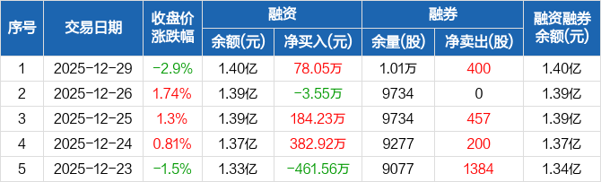 永信至诚:融资净买入78.05万元,融资余额1.4亿元(12-29)