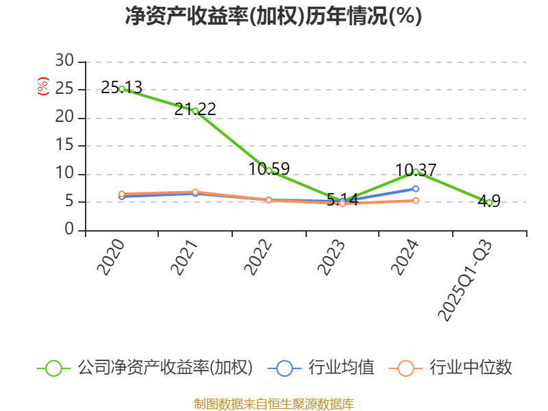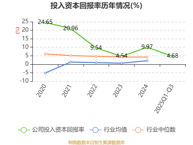 盈利能力方面, 2025年前三季度公司加权平均净资产收益率为4.9%,同比下降2.68个百分点。公司2025年前三季度投入资本回报率为4.68%,较上年同期下降2.65个百分点。