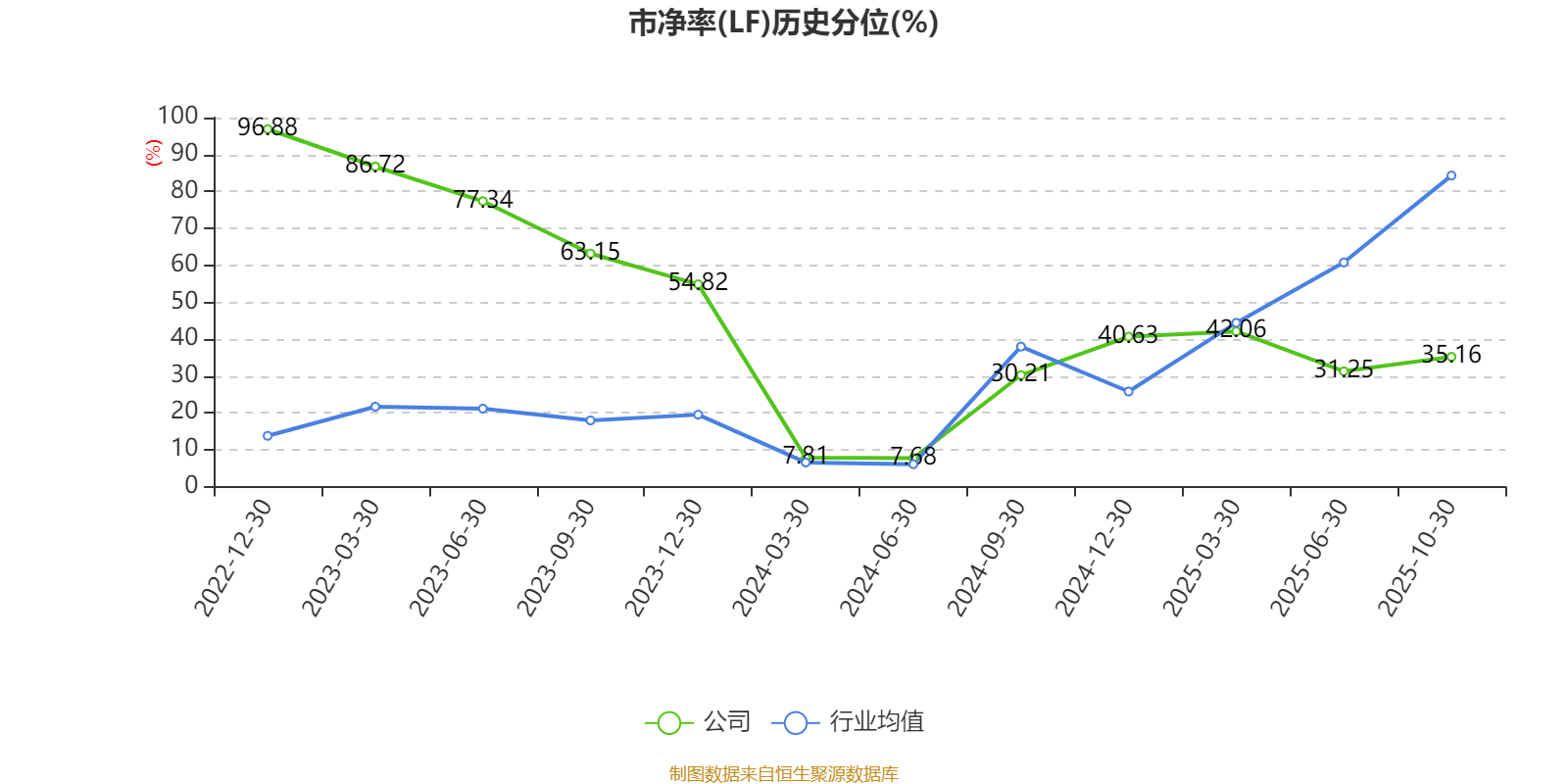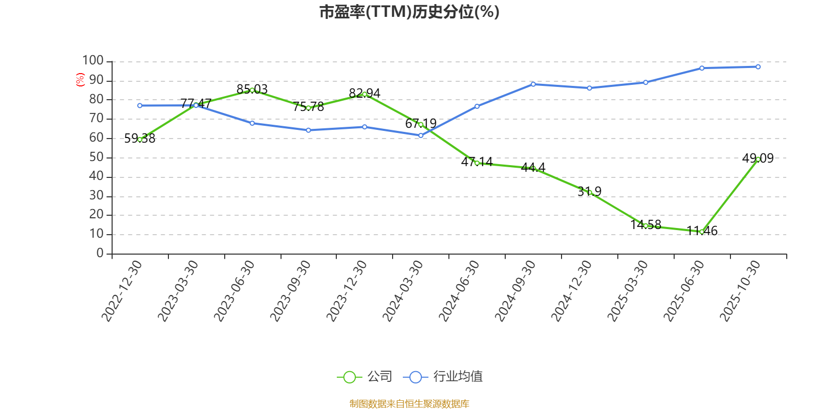 市盈率、市净率为负时,不显示当期分位数,会导致折线图中断。