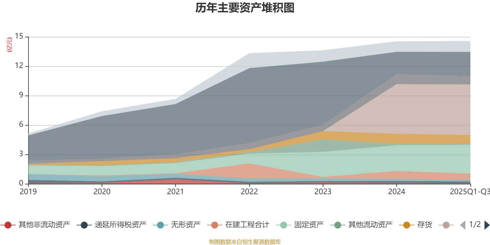 资产重大变化方面,截至2025年三季度末,公司固定资产较上年末增加11.84%,占公司总资产比重上升2.11个百分点;货币资金较上年末增加10.33%,占公司总资产比重上升1.57个百分点;应收票据及应收账款较上年末减少19.37%,占公司总资产比重下降1.39个百分点;在建工程合计较上年末减少20.76%,占公司总资产比重下降1.16个百分点。
