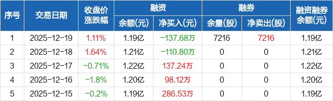 宣泰医药:融资净偿还137.68万元,融资余额1.19亿元(12-19)