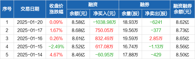 晶合集成:融资净偿还1038.98万元,融资余额8.58亿元(01-20)