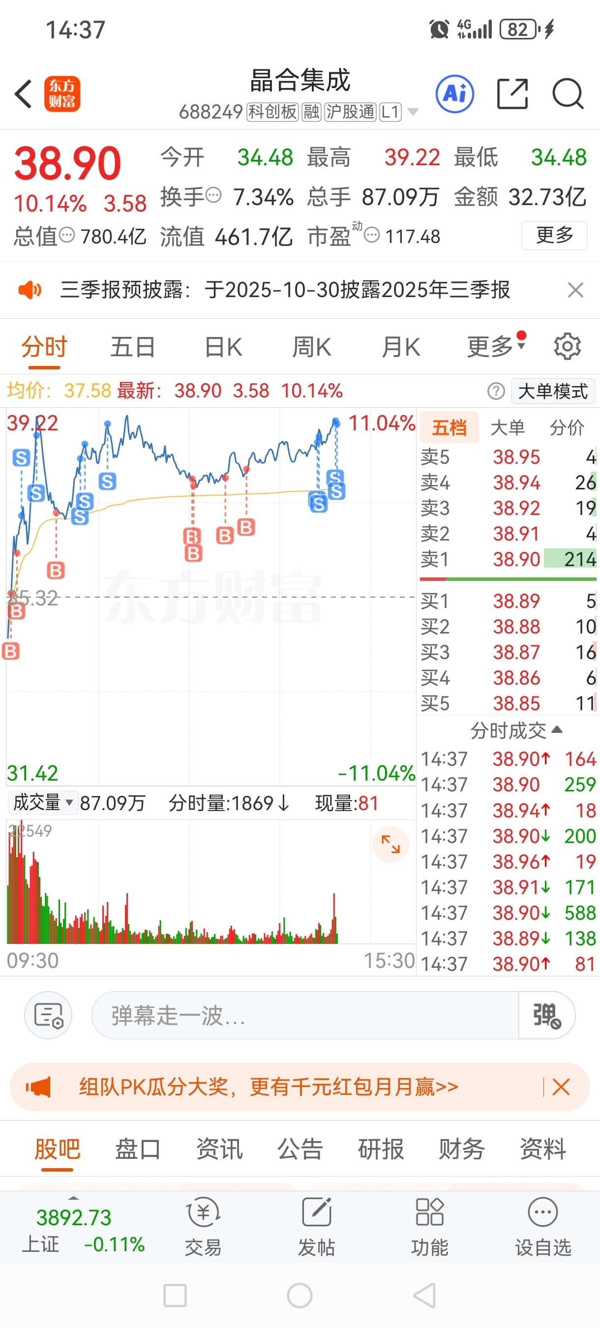 $晶合集成(SH688249)$ 今日做T知足了。完美收官
