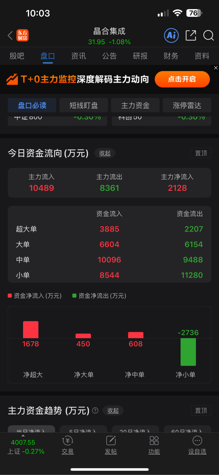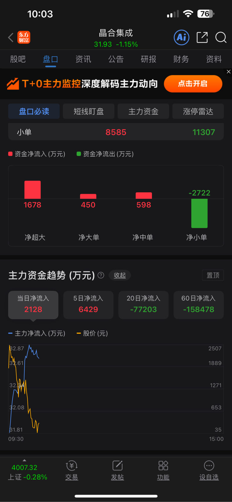 $晶合集成(SH688249)$ 显示资金流入,股价逆流而下