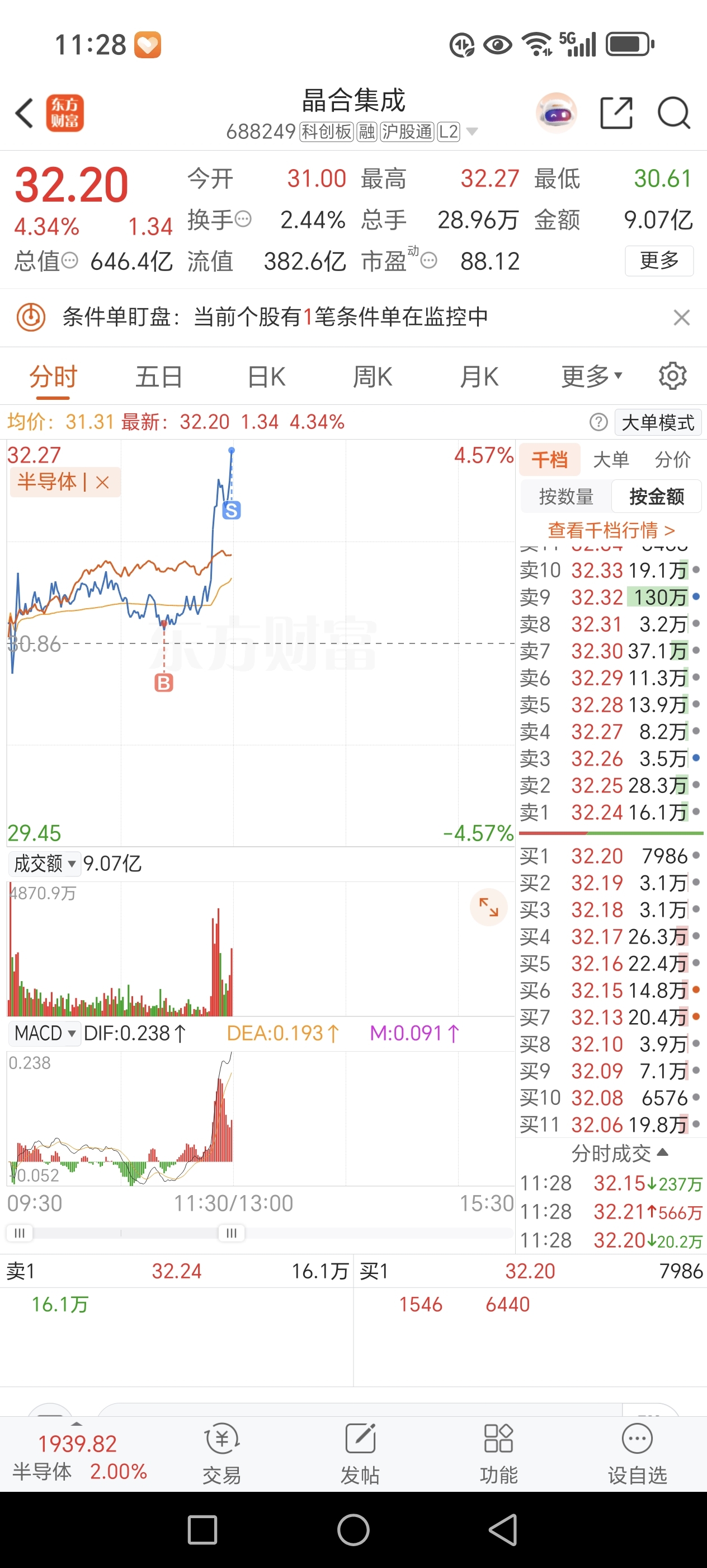 $晶合集成(SH688249)$ 600股做t.一股赚1元