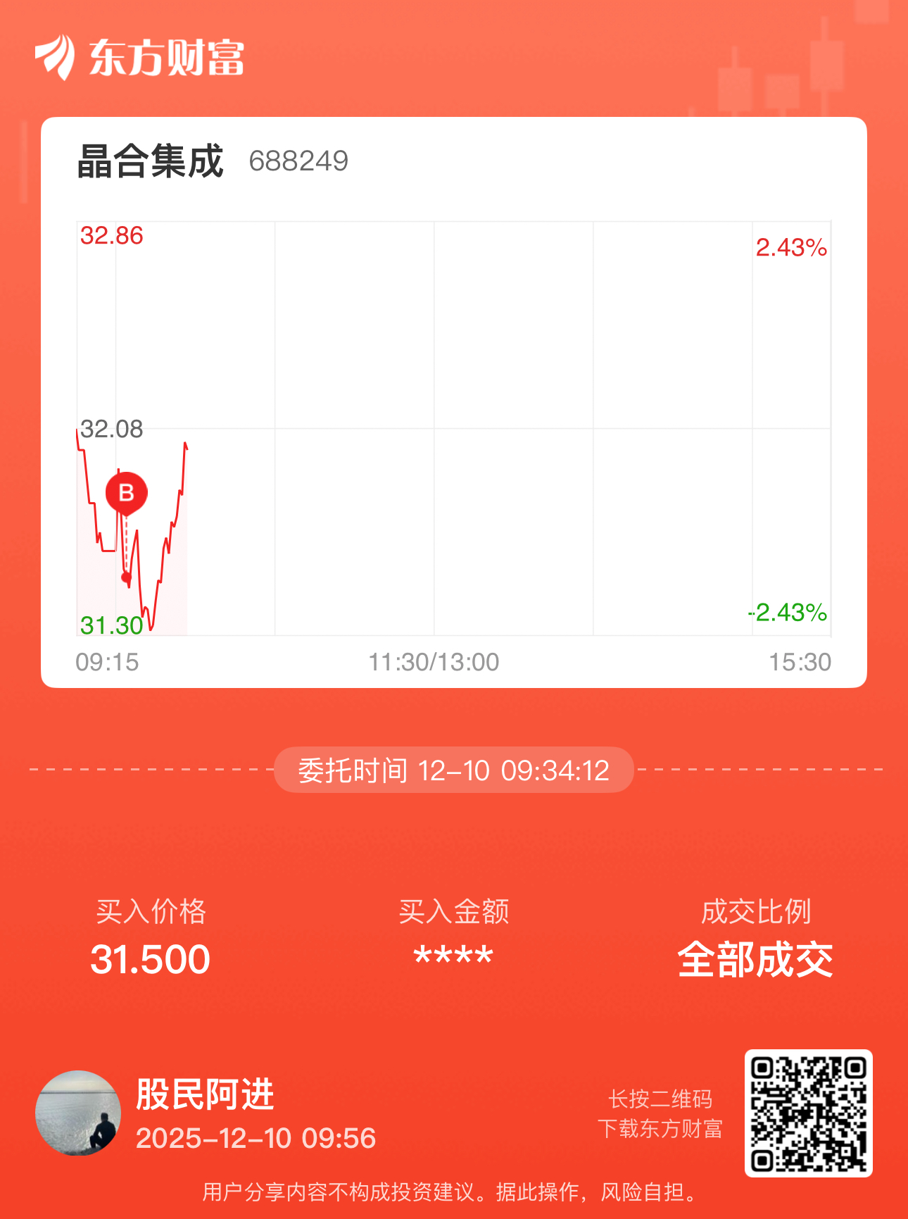 温馨提示: 1.根据《证券法》规定,禁止编造、传播虚假信息或者误导性信息,扰乱证券市场;2.用户在本社区发表的所有资料、言论等仅代表个人观点,与本网站立场无关,不对您构成任何投资建议。用户应基于自己的独立判断,自行决定证券投资并承担相应风险。《东方财富社区管理规定》