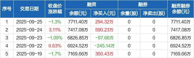井松智能:融资净买入294.32万元,融资余额7711.4万元(09-25)