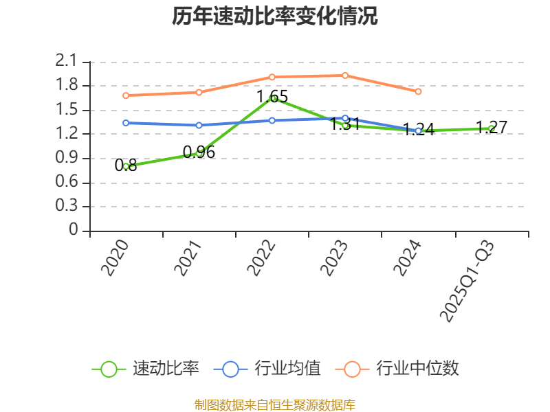2025年前三季度,公司流动比率为1.75,速动比率为1.27。