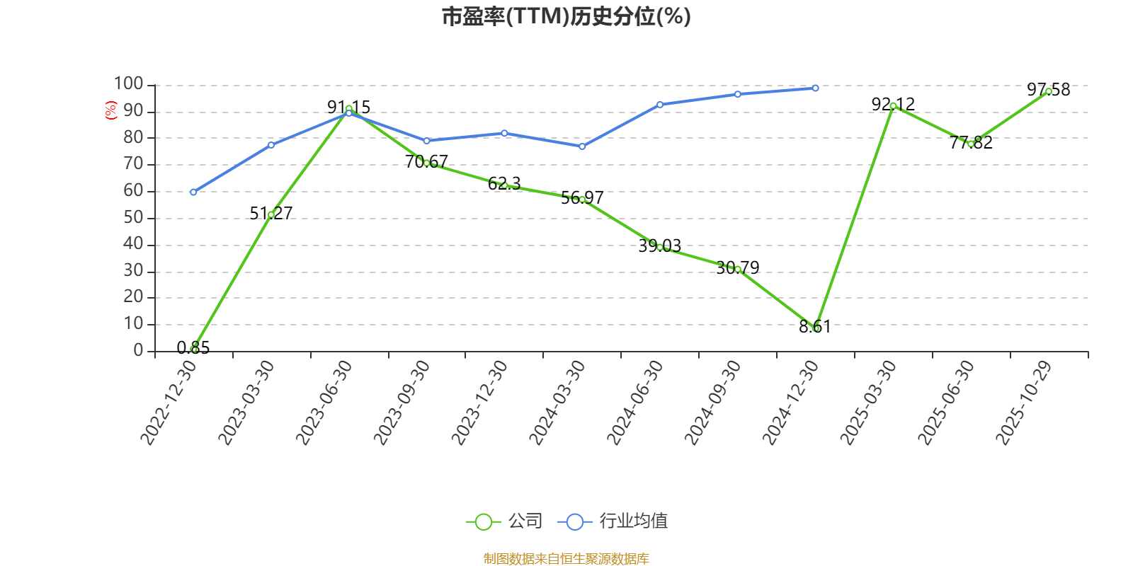 市盈率、市净率为负时,不显示当期分位数,会导致折线图中断。