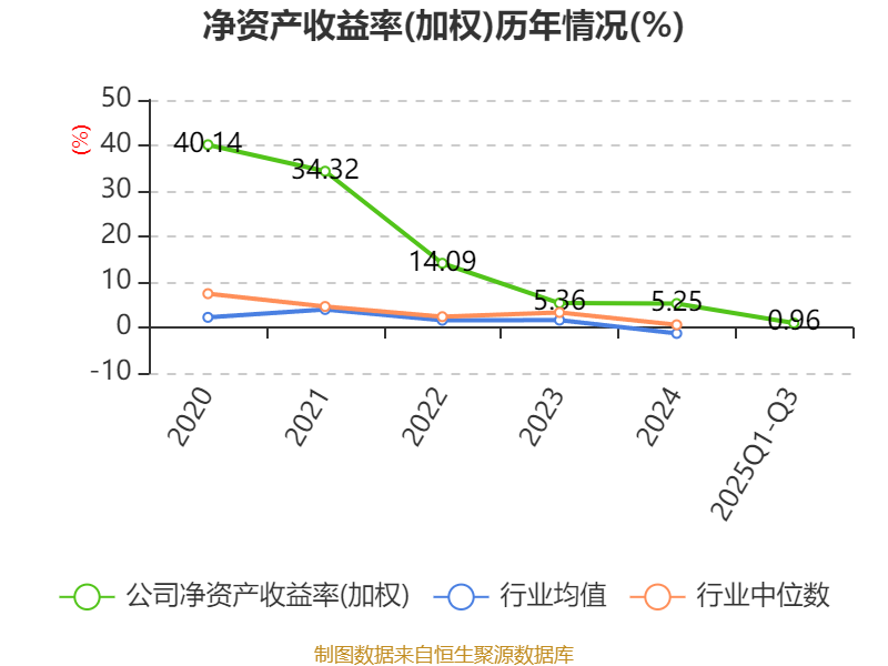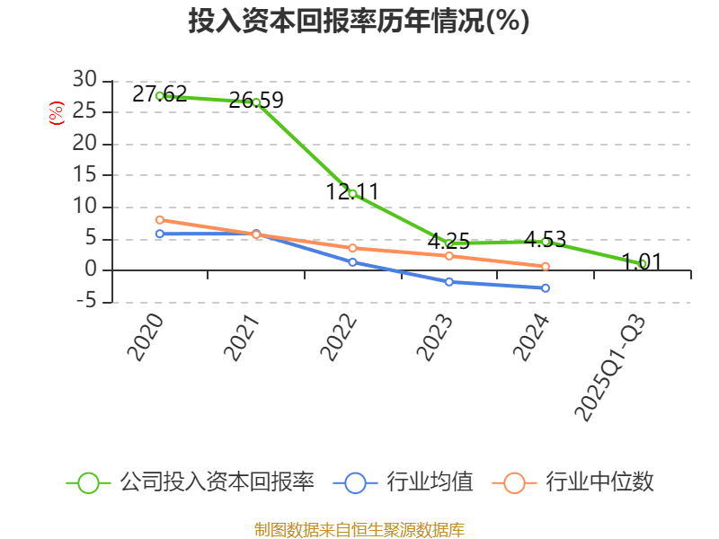 盈利能力方面, 2025年前三季度公司加权平均净资产收益率为0.96%,同比下降3.12个百分点。公司2025年前三季度投入资本回报率为1.01%,较上年同期下降2.52个百分点。