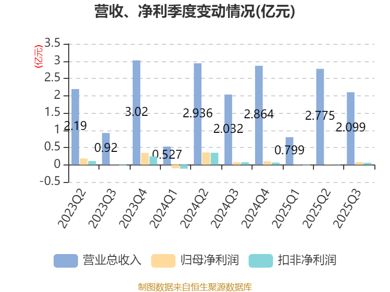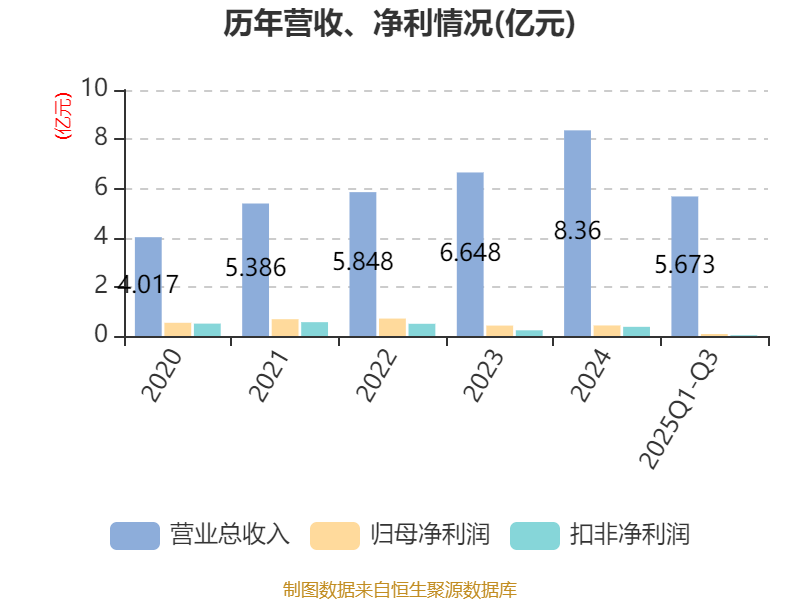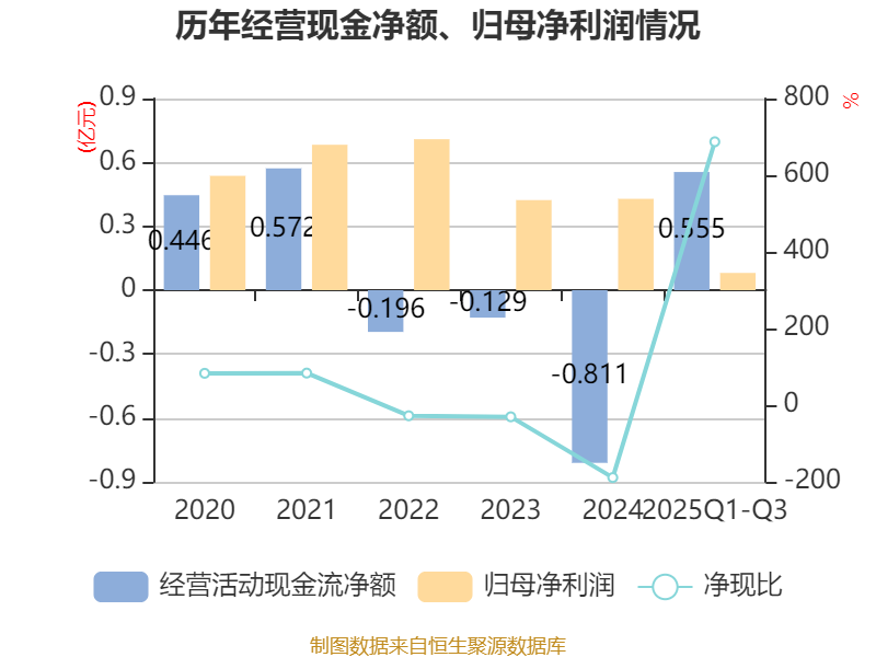 2025年前三季度,公司经营活动现金流净额为5545.33万元,同比增加1.67亿元;筹资活动现金流净额321.26万元,同比增加1104.86万元;投资活动现金流净额-6641万元,上年同期为-1324.74万元。