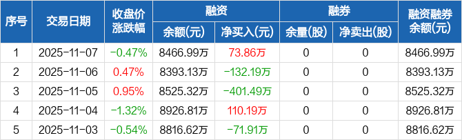 井松智能:融资净买入73.86万元,融资余额8466.99万元(11-07)