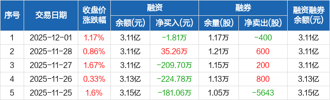 天德钰:融资净偿还1.81万元,融资余额3.11亿元(12-01)