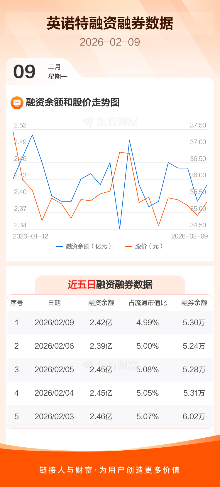 交易所最新数据显示,英诺特于2026年2月9日获融资买入1442.49万元,融资偿还1210.24万元,当日融资净买入232.25万元。目前,该股融资余额2.42亿,占流通市值比例为4.99%。