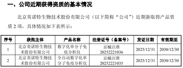 英诺特表示,新资质的取得将进一步拓宽公司产品品类,增强市场拓展能力与核心竞争力。