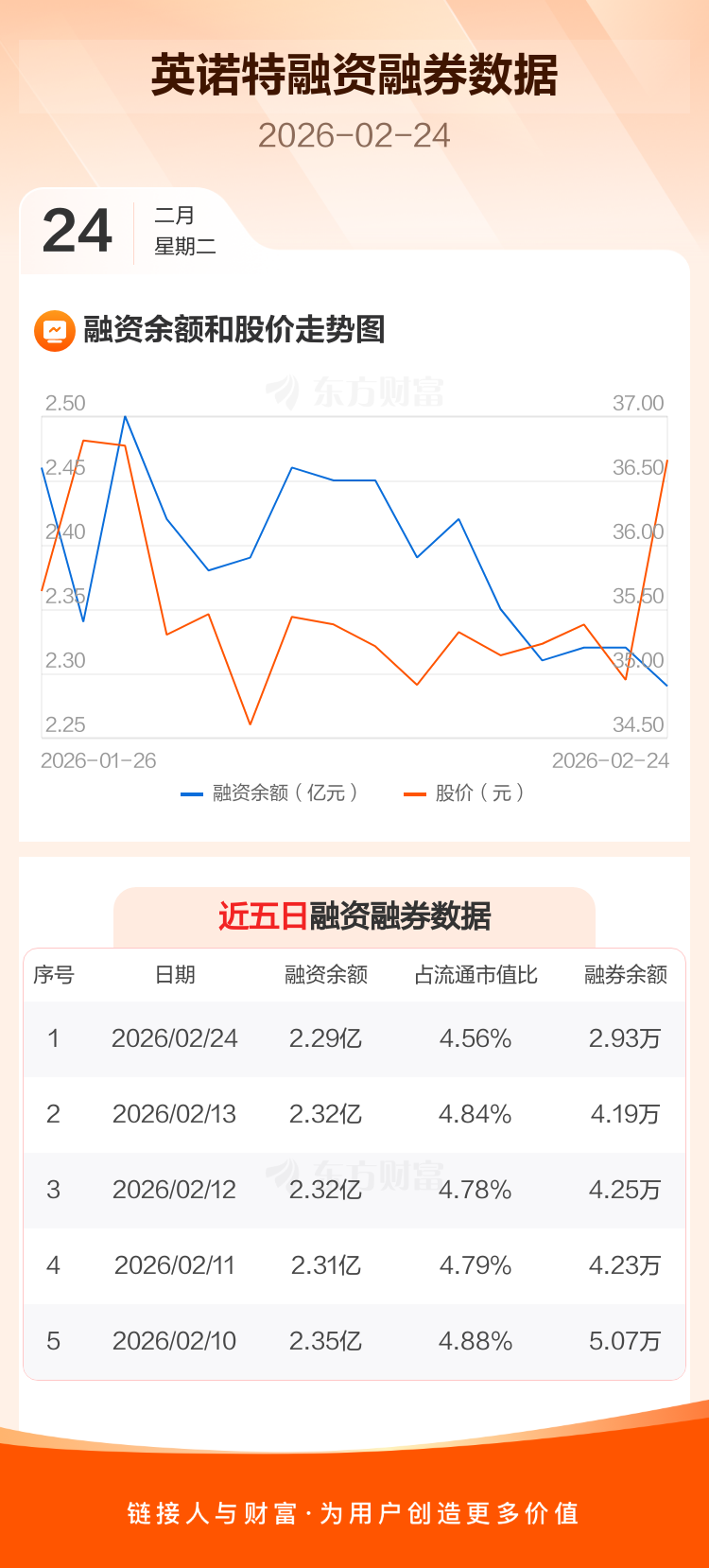 交易所最新数据显示,英诺特于2026年2月24日获融资买入1509.22万元,融资偿还1752.70万元,当日融资净偿还243.48万元。目前,该股融资余额2.29亿,占流通市值比例为4.56%。