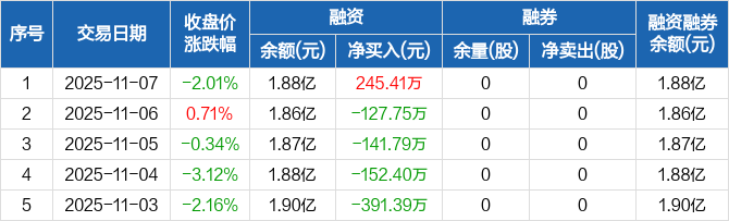 凯尔达:融资净买入245.41万元,融资余额1.88亿元(11-07)